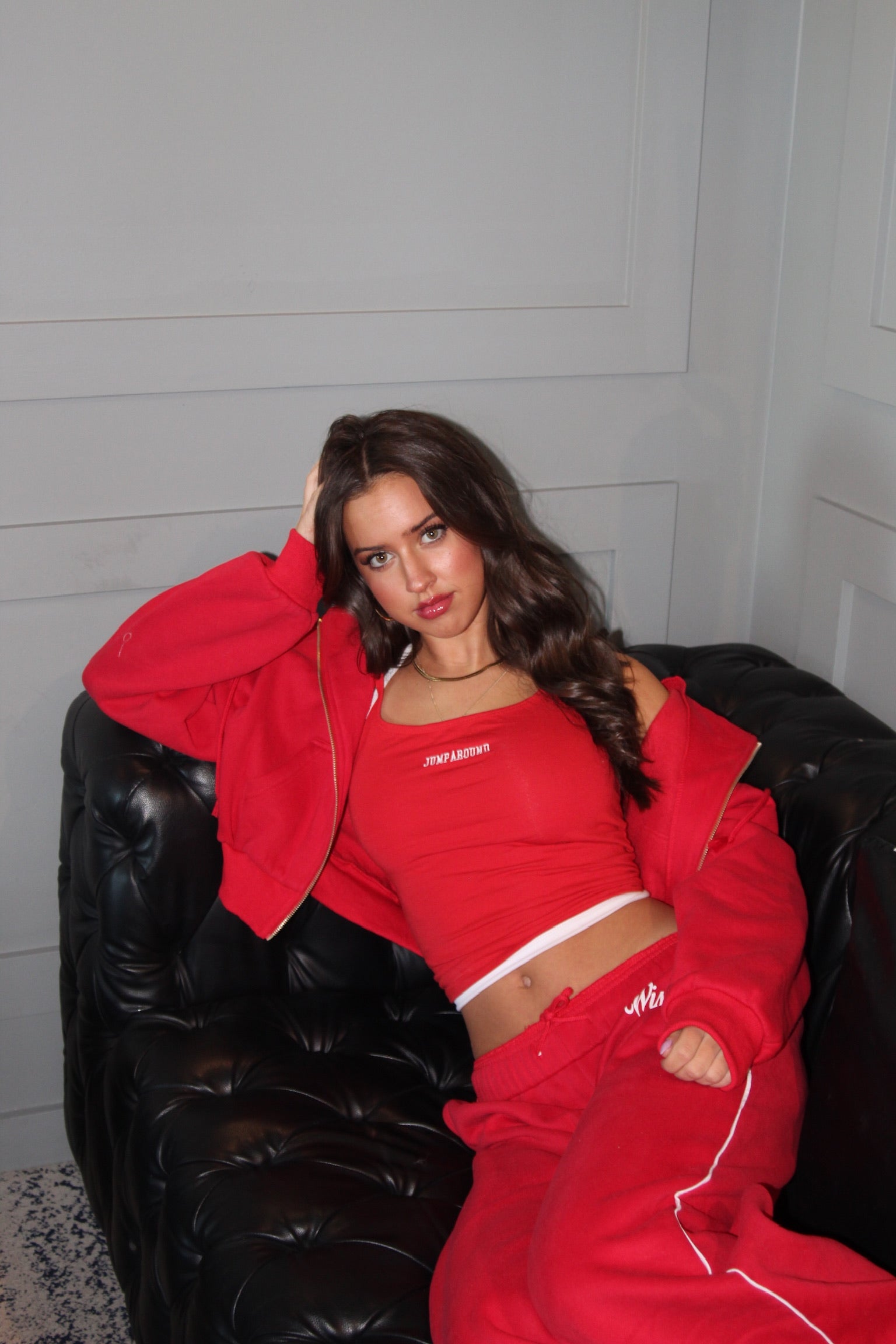 Layer up with the Madison Crop Full Zip, designed for effortless versatility. This oversized cropped silhouette pairs seamlessly with our script sweat pants, and script sweat shorts for cozy comfort and effortless style. Whether you're heading to class or keeping it casual, this set-ready essential delivers both style and functionality.